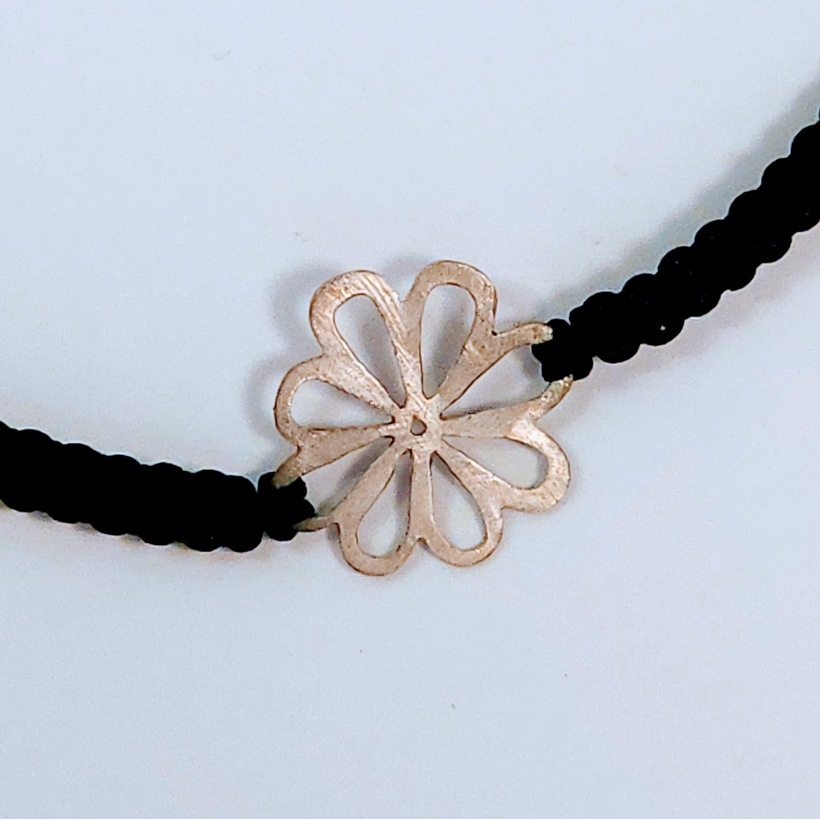The silver flower is designed and cut out by hand which makes it very unique.