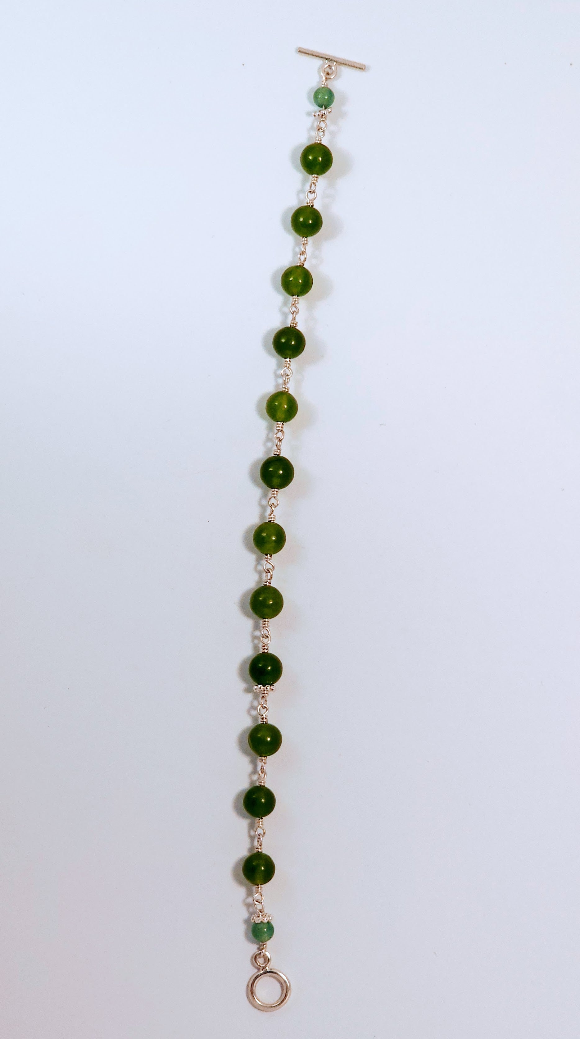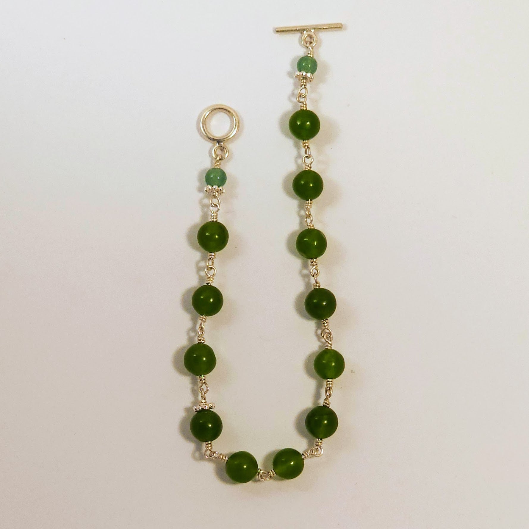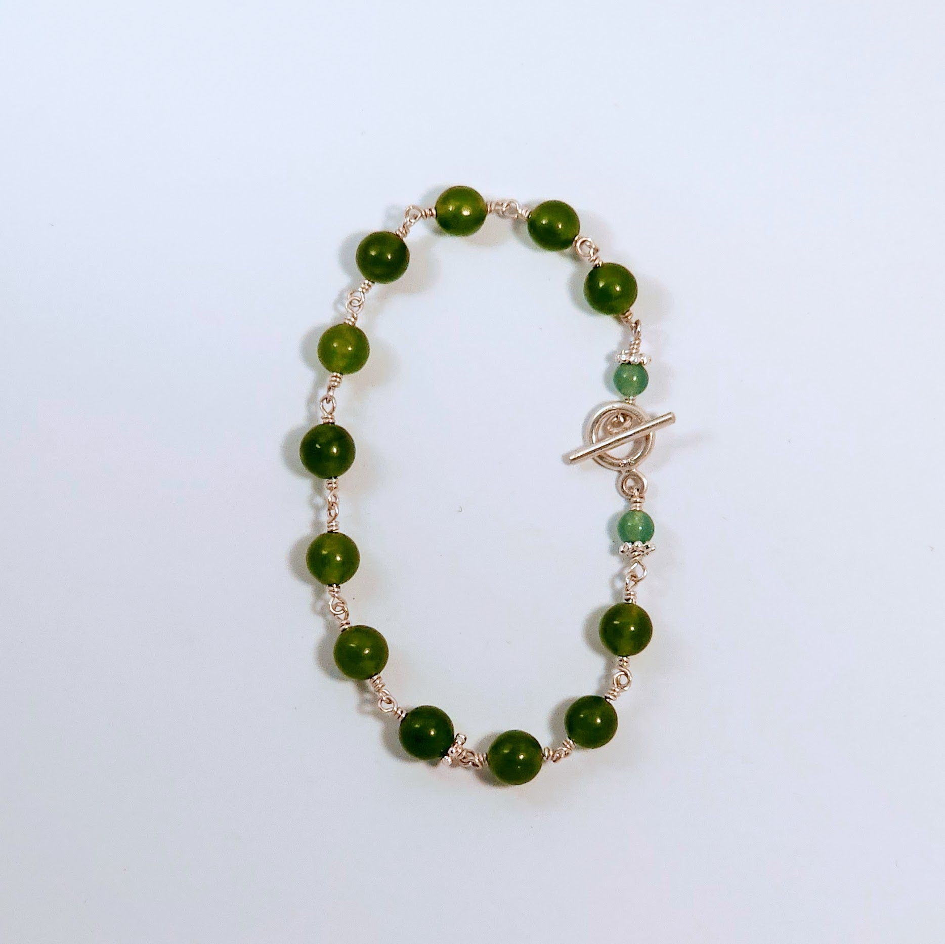 This handmade bracelet features stunning green jade and silver. With a unique and natural design, this bracelet will add a touch of nature to any outfit. The jade gemstone is known for its calming and balancing properties.