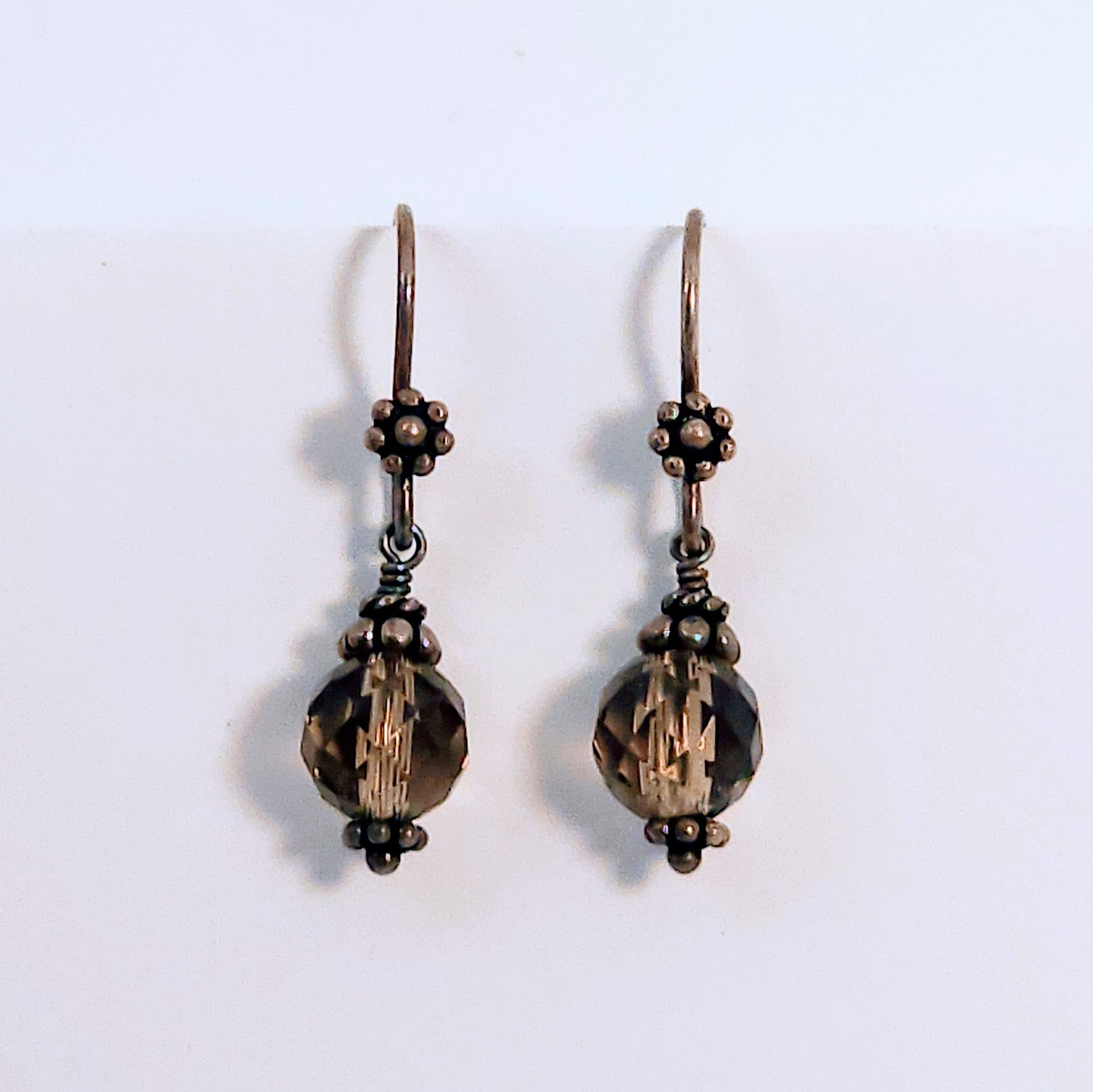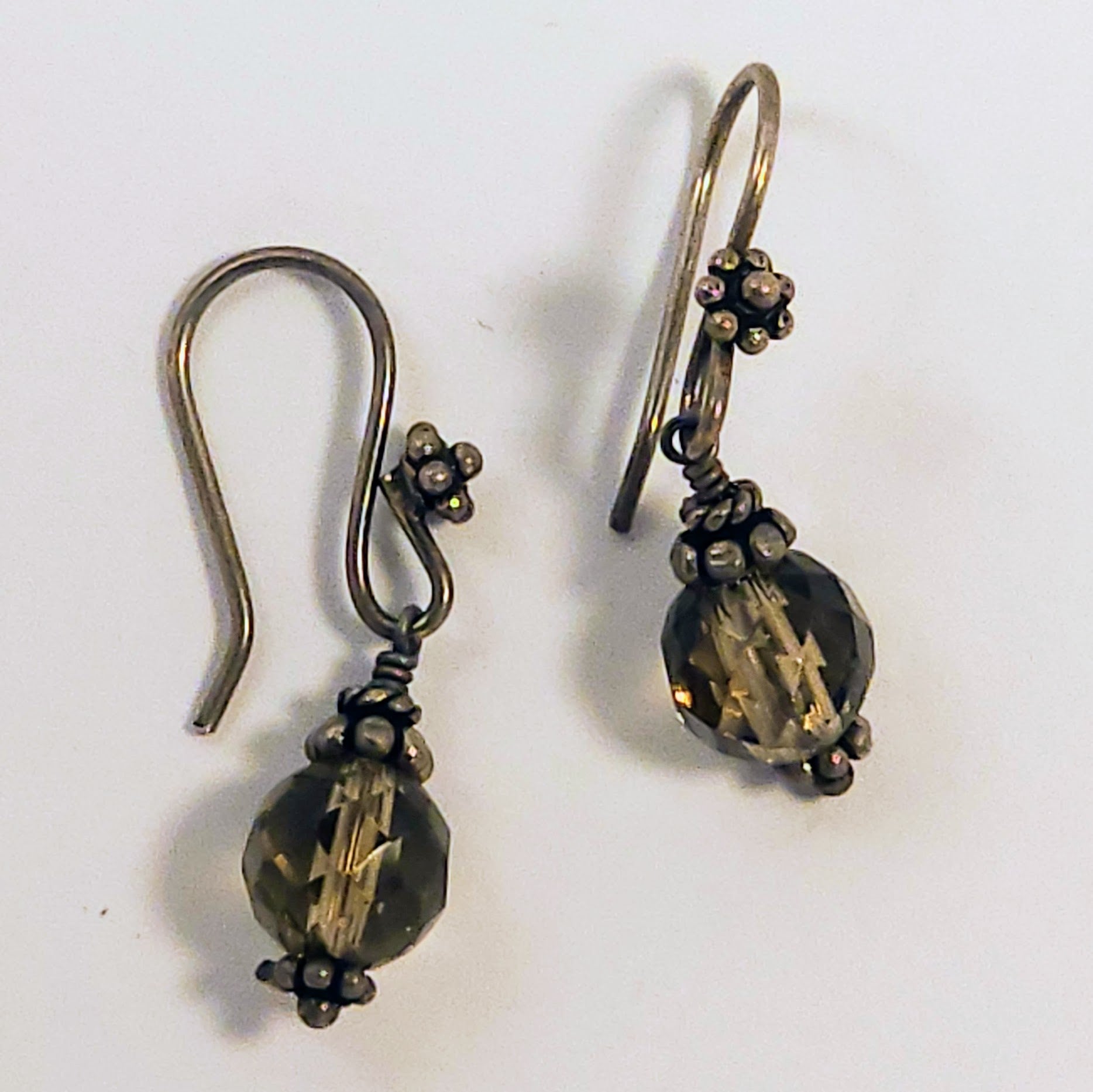I really like these ear hooks with their flower attached at the front. The silver has been darkened to match with the Smokey quartz.