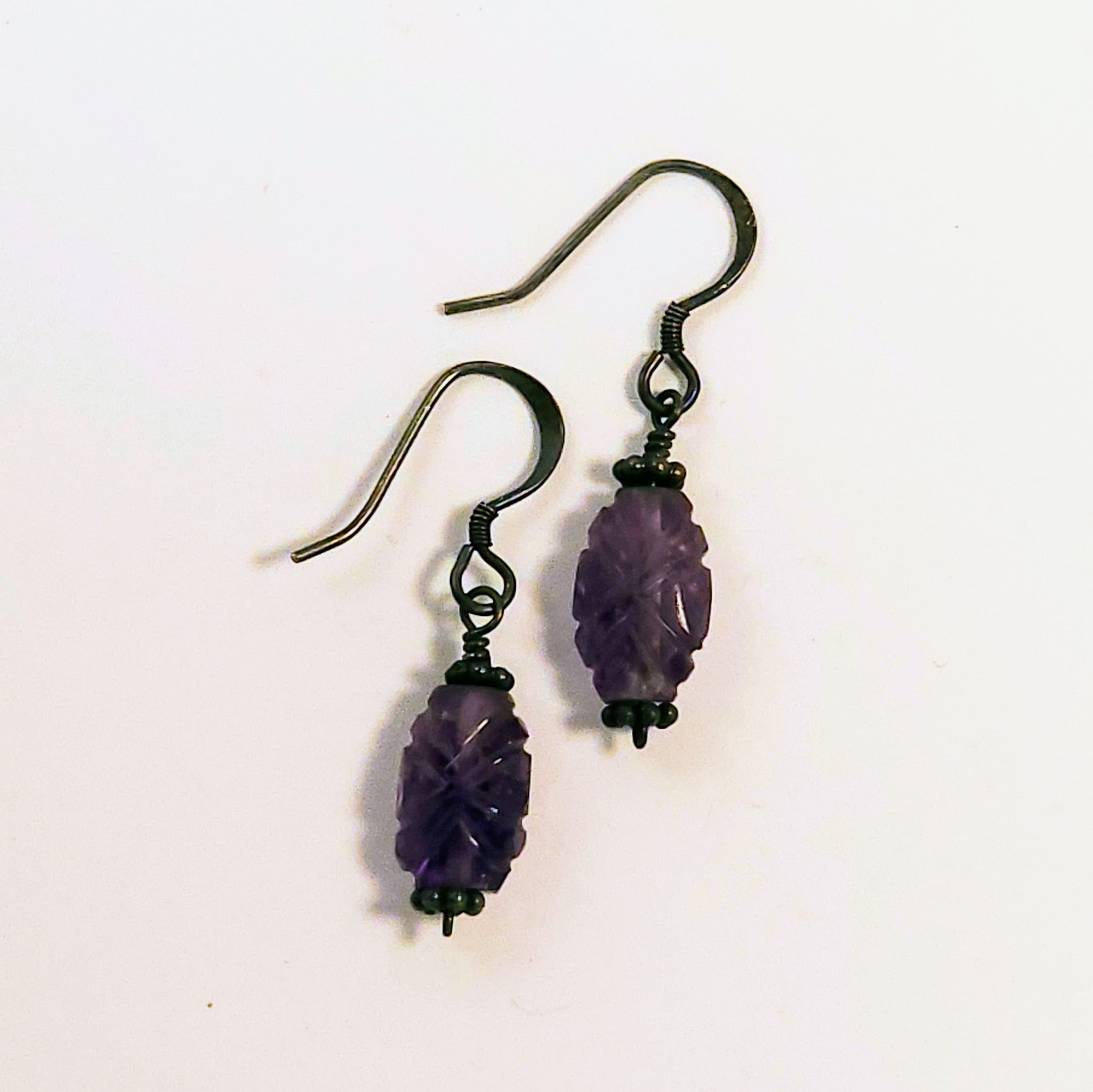 Stunning earrings crafted in silver adorned with hand cut amethysts.